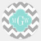 Grey and White Chevron ZigZag Pattern, Aqua Turquoise Quatrefoil 3 Initial Monogram