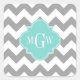 Grey Wht Chevron Aqua Quatrefoil 3 Monogram Square Sticker