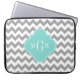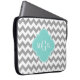 Grey Wht Chevron Aqua Turq Quatrefoil 3 Monogram Laptop Sleeve