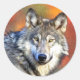 Grey Wolf Oil Painting Design with vivid vibrant colours such as grey, white, black, yellow, orange, red, and some greens.