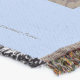 A quality printed throw has its advantages. This is a much finer weave throw than its loopier cousins, and though lighter, it is worth the investment for custom room accessorizing. The back is much prettier than the typical brown, and the fringe on the long sides very vivid, the selvage nicely done. Before photographing, I washed the throw in cold water, delicate, with a thicker woven throw the same size. On tumble dry low, this throw was dry in half the time as the other. This is a very practical quality if you use throws for furniture covers or to wrap up in frequently. The sleekness of the fabric makes it a great layer for accenting or protecting without the feeling of sitting on too much stuff. Perfect for napping or when you feel a light chill coming on. The color printing is beautiful and on this fabric, matched the design and color of my Photoshop image. This is an advantage for blending room fabrics and colors. The fringe on the short sides prints the colors from the design image and therefore varies from the side fringe. I streaked a white fractal line through the plaid pattern to give the illusion of weaving. This printed as crisp as an illusory thread, and put some white in the short side fringe, showing another advantage of print vs loomed- for artistic purposes, line lines, detail, and color integrity can be planned and preserved. My loomed throws have color limitations and more of a needlepoint texture. Print throws reproduce an exact image. The throw felt a little stiff straight out of the package, but this went away in the first delicate wash. Of course I searched the wash water for ink or bleeding and there was none.