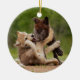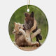 Grey Wolf Pups Wrestling Ceramic Tree Decoration