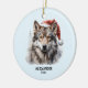 Grey Wolf Red White Santa Hat Personalised Ceramic Tree Decoration