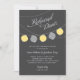 This warm and festive rehearsal dinner invitation features a charming string of yellow and grey paper lanterns against a rich charcoal grey background with delicate string lights. Silver script typography adds an elegant touch to this outdoor celebration-inspired design. All names, dates, and event details are fully editable. A perfect choice for a garden, patio, or summer evening wedding rehearsal dinner.