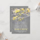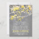 Rustic wedding invitation with sparkly string lights hanging on the blooming tree branches. Shabby and fun stylish typography. Modern old paper texture background grey and yellow colours design. If you are having a modern or rustic outdoor wedding in the garden, country with a tree - this invite is just a perfect choice for you. ------------Please browse collection for more matching items and colours.