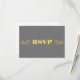 A wedding rsvp featuring yellow text and grey background on front. Personalise with dateon back. Look for matching items at Jill's Paperie.