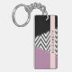 Grey Zigzag, Grey Chevron, Purple, Your Name Key Ring