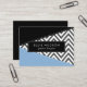 Elegant, stylish and sophisticated business cards with zigzag (chevron) pattern in grey and white colour and blue and black patches of colour. Modern and trendy design, perfect for zigzag lovers.