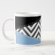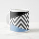 Grey Zigzag, Grey Chevron, Zigzag Pattern, Blue Large Coffee Mug