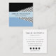 Elegant, stylish and sophisticated business cards with zigzag (chevron) pattern in grey and white colour with blue and black patches of colour. Modern and trendy design, perfect for zigzag lovers.