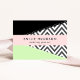 Elegant, stylish and sophisticated business cards with zigzag (chevron) pattern in grey and white colour with mint and black patches of colour. Modern and trendy design, perfect for zigzag lovers.