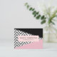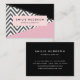 Elegant, stylish and sophisticated business cards with zigzag (chevron) pattern in grey and white colour with pink and black patches of colour. Modern and trendy design, perfect for zigzag lovers.