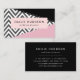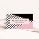 Elegant, stylish and sophisticated business cards with zigzag (chevron) pattern in grey and white colour with pink and black patches of colour. Modern and trendy design, perfect for zigzag lovers.