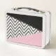 Grey Zigzag, Grey Chevron, Zigzag Pattern, Pink Metal Lunch Box
