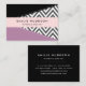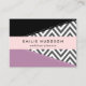 Elegant, stylish and sophisticated business cards with zigzag (chevron) pattern in grey and white colour with purple and black patches of colour. Modern and trendy design, perfect for zigzag lovers.