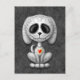 This adorable grey puppy design is decorated with swirls and dot patterns. Delicate flower pedals circle the pure black eyes in the tradition of the Day of the Dead sugar skulls. The little dog is sitting down, looking forward with its tail waving in the background. The over sized head sits on a tiny body which creates a playful, cartoon like appearance. A five point star sits in the middle of the puppy’s forehead while a bright red and yellow heart appears in the centre of the chest. This cute little puppy is a fun and stylish design inspired by the beautiful patterns of Day of the Dead sugar skulls.