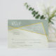 This simple, modern geometric style wedding RSVP card features a greyed jade colour theme with calligraphic elements and asymmetric gold frame accents and a marble texture appearance - by katz_d_zynes