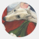 This sticker features a reproduction of my original oil painting of a greyhound and Santa.