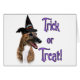 Will it be Tricks or Treats this Halloween? Our holiday design has your favourite dog breed, the brindle coated Greyhound, wearing a witch's hat. Add a little 'Hocus Pocus' to All Hallows' Eve this year!