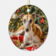This adorable Christmas ornament, featuring a tan and white Greyhound lying under a Christmas tree, is a wonderful gift for any Greyhound lover.