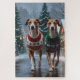 This festive design captures the joyful spirit of the holiday season, featuring an adorable dogs.Nestled in a winter wonderland, complete with a decorated Christmas tree, and beautifully wrapped presents. Snowflakes gently fall, adding a magical touch to the scene, while the vibrant colours of the holiday decorations create a warm and cheerful atmosphere.