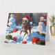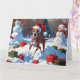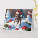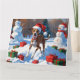A sleek Greyhound dashes gracefully through the snowy landscape, wearing a festive red Christmas hat. This elegant winter scene reflects the breed’s speed, slim build, and gentle nature while capturing the joyful spirit of the holiday season. A heartwarming design full of festive charm.