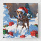 Greyhound Running in Snow with Christmas Hat Square Wall Clock
