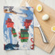Greyhound Running in Snow with Christmas Hat Tea Towel