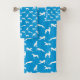 Greyhound Silhouettes White on Blue Bath Towel Set