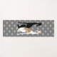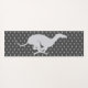 Two sister greyhounds sitting. A pattern of greyhounds running in the background. The downward dog of all mats, you'll be the envy of the whole yoga class with this one.