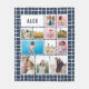Grid navy blue 12 photo modern minimal abstract fleece blanket