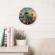 Wall Clock, 25.4 cm Round Black Wooden Frame