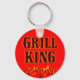 Grill King funny bbq saying in a western flaming font for cooks and cookout chefs. With graphic art of red and orange flames at the bottom of the design. Another original by MomsRetro.