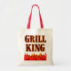 Grill King funny bbq saying in a western flaming font for cooks and cookout chefs. With graphic art of red and orange flames at the bottom of the design. Another original by MomsRetro.