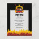 Barbecue grill over flaming charcoal, scroll banner with custom text over fork and spatula.