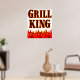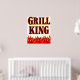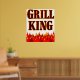Grill King funny bbq saying in a western flaming font for cooks and cookout chefs. With graphic art of red and orange flames at the bottom of the design.