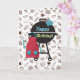 Send sizzling birthday wishes with this bold and fun grill-themed card! Featuring a black grill with "Happy Birthday!" text, surrounded by a pattern of meats, pizza, beer mugs, and more, this card is perfect for anyone who loves to fire up the BBQ. Blank inside for your own message—ideal for foodies, dads, or backyard chefs.