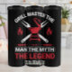 This humourous graphic features a vintage-style illustration of a red barbecue grill with two flames and crossed tools. The design includes the witty text 'GRILL MASTER THE MAN THE MYTH THE LEGEND,' creating a simple and fun graphic for a grilling enthusiast.