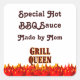 Grill Queen funny bbq saying in a western flaming font for cooks and cookout chefs. With graphic art of red and orange flames at the bottom of the design. Another original by MomsRetro.