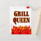 A custom recipe card with a funny saying reading Grill Queen in a western flaming font with flames in red and orange. With graphic art of red and orange flames at the bottom of the design. Click Customise It to change fonts add text, even save your design for later.