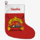 Barbecue grill over flaming charcoal, scroll banner with custom text over crossed tongs and brush. Custom background colour. Custom name text.