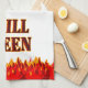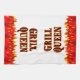 Grill Queen funny bbq saying in a western flaming font for cooks and cookout chefs. With graphic art of red and orange flames at the bottom of the design.