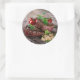 Grilled bbq steaks with fresh herbs and tomatoes classic round sticker