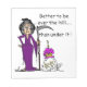 Stella as the grim reaper on funny birthday T-shirts, buttons, mugs, magnets, keychains, bags, stickers, and more with Stella proclaiming it's better to be over the hill than under it!