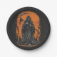 Grim Reaper Cartoon in Sunset Graveyard Paper Plate
