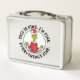 This is a standard metal lunchbox that appears to work just fine. We designed this box ourselves with an uploaded photo and custom text on the front and back. It looks absolutely beautiful except the front of the lunchbox is not centered like it shows in the photo. The print borders don't align with the inset flat part of the box where the preview photo online showed it perfectly centered in there. The back looks nice and centered though.