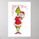 This heartwarming illustration captures the moment the Grinch's heart grew three sizes! The full-body image shows the tall Grinch dressed in his fuzzy red Santa suit, gently holding the tiny Cindy Lou Who, who is sweetly dressed in a matching little Santa cap and pink outfit, holding a candy cane. The Grinch is genuinely smiling (not scheming!), and red lines radiate from his head, illustrating his newfound Christmas joy. It's the perfect image for celebrating the true spirit of the holidays!