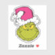 This fantastic, bold illustration is a close-up portrait of the Grinch in full mischievous mode! He has his signature sly grin and bright yellow eyes, but his look is updated with a large, fluffy Santa hat in a fun, unexpected pink/fuchsia colour instead of the traditional red. This graphic is perfect for anyone who loves the holidays but embraces a non-traditional, delightfully grumpy, and colourful style!