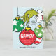 Time to get your mischief on! This adorable Grinch Holiday Party Invitation is set against a soft blue background and features the Grinch's fuzzy green hand reaching into a fun cluster of red and green ornaments decorated with stripes and stars. The largest ornament declares, "merry GRINCHmas," and contains all the fun party details! This whimsical invitation is the perfect way to invite friends and family to celebrate the holidays with a little bit of Grinchy cheer!