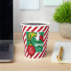 Oh, look out! This festive little paper cup has been visited by the one and only Grinch! It's wrapped in a cheerful peppermint candy cane stripe that screams Christmas cheer. But the Grinch is trying to grinch a gorgeous red ornament right off the cup! His fuzzy green hand is reaching right out, though he can't steal the sweet message: "merry GRINCHmas and Happy New Year!" This cup is customized with a special family name, making it the cutest, sneakiest way to serve cocoa or eggnog at your holiday bash!
